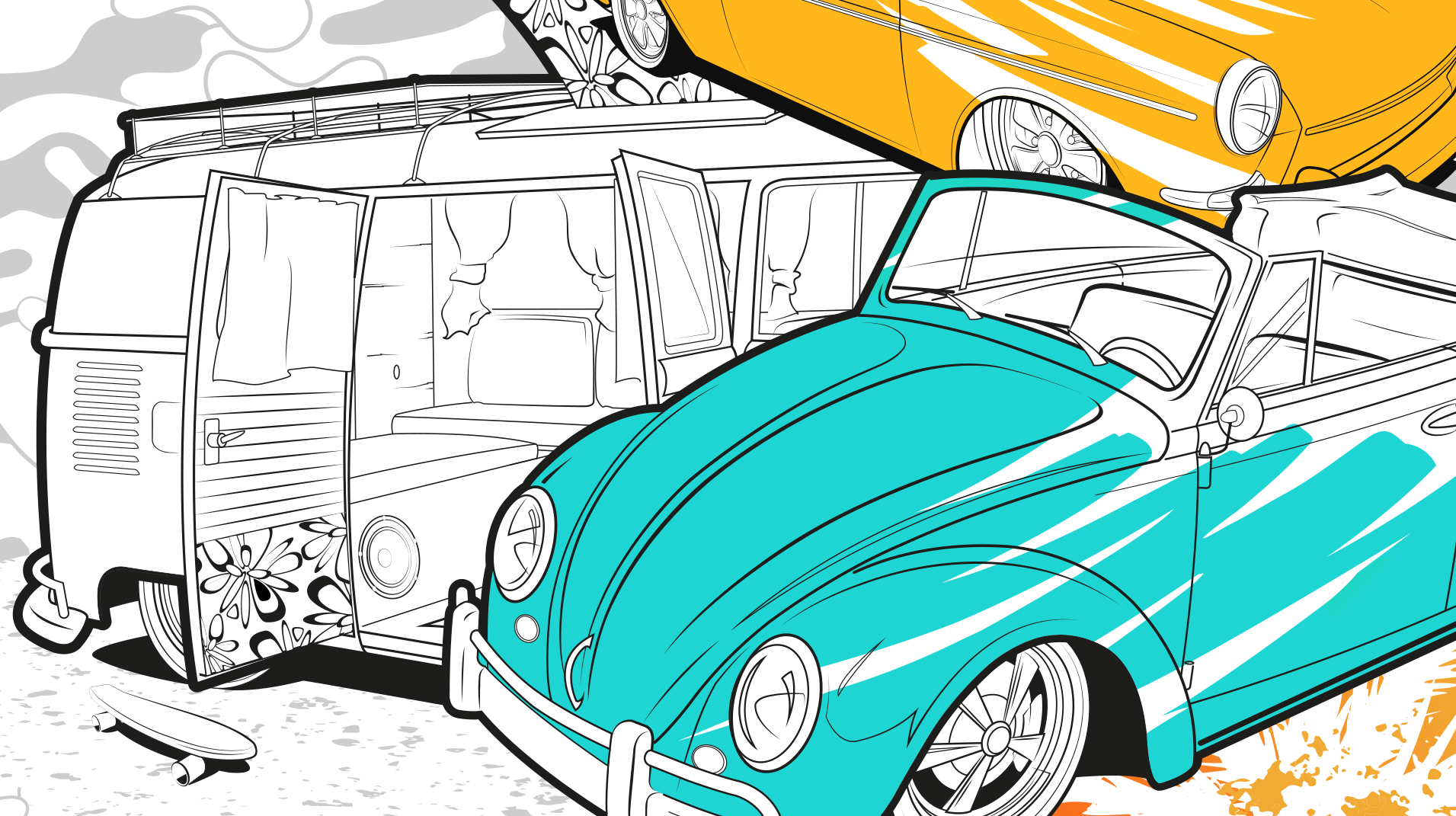 VW Themed Bugs, Buses 'n Campers A4 Colouring Book