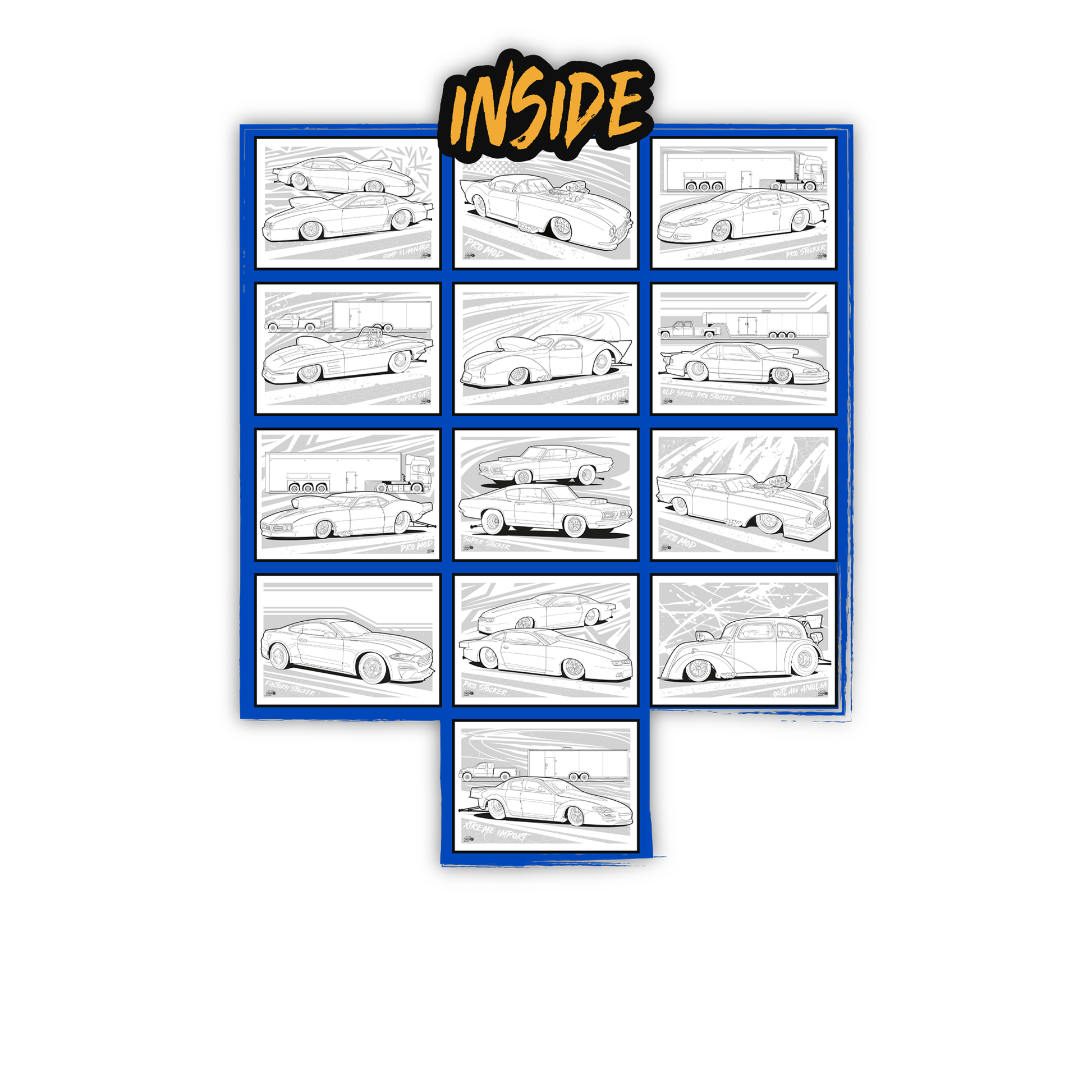 Colouring book, comprising 13 pages of our unique dragster outlines, transporters and backgrounds to colour up. Printed on high quality colouring paper.